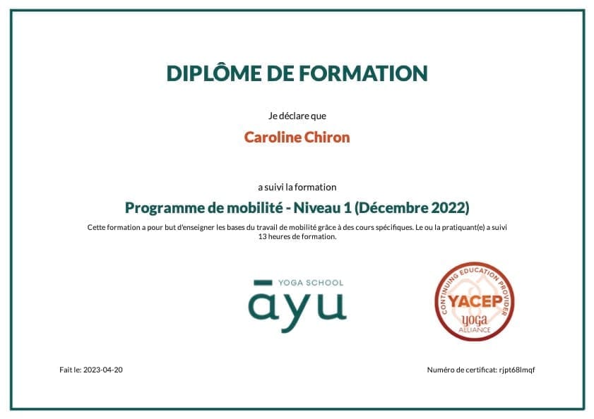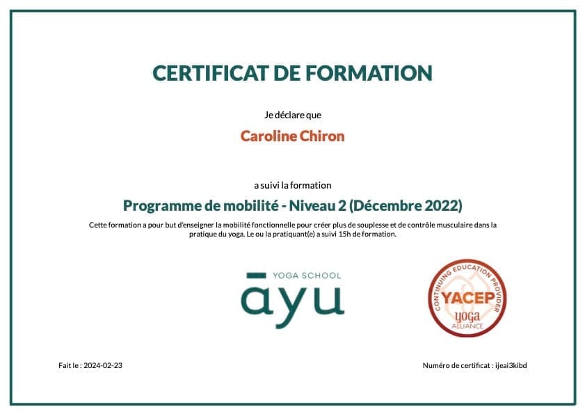 Manon Descroix, 26h MobilitĂ© Fonctionnelle, Äyu Yoga School