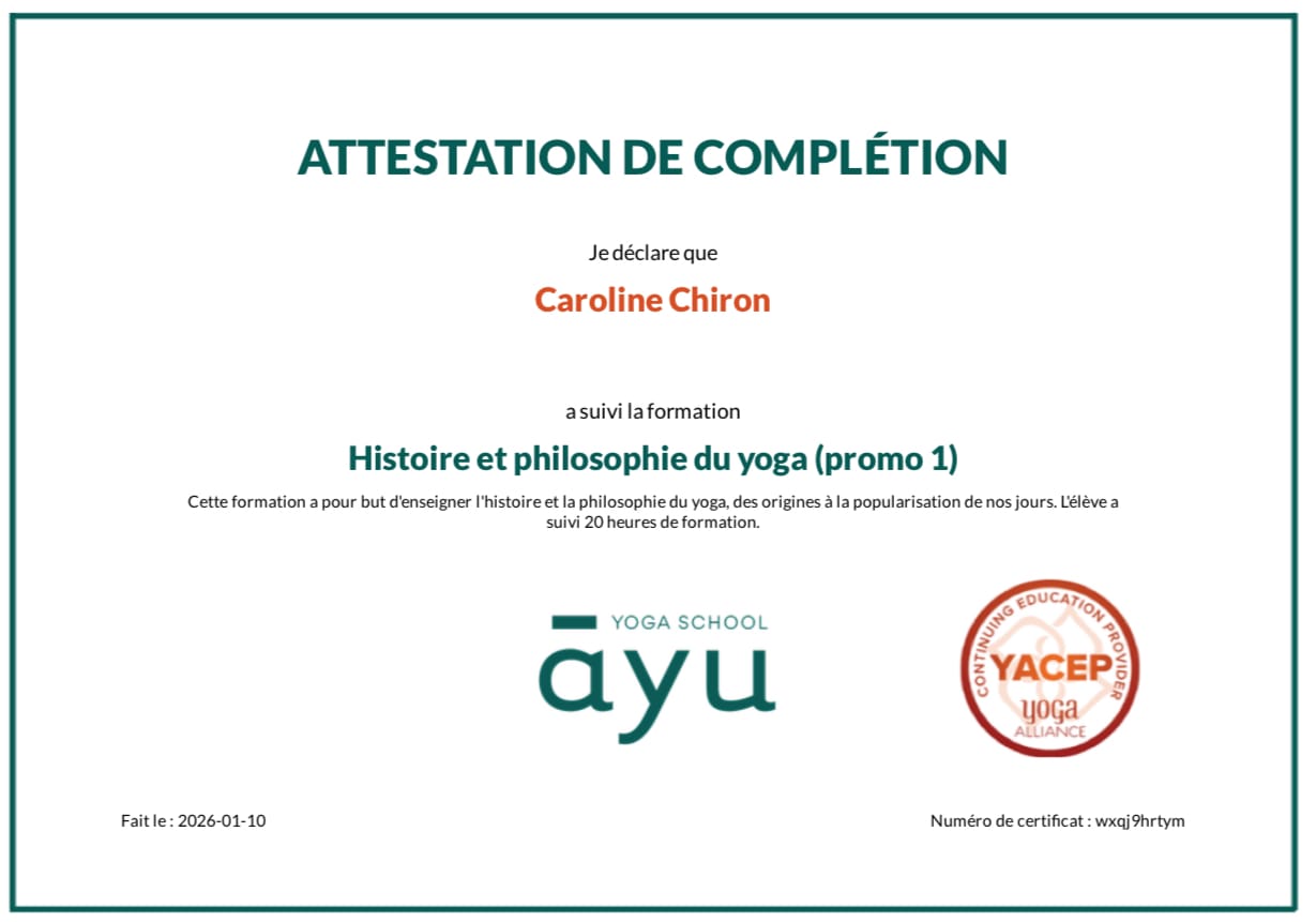 Zineb Fashi, 20h Histoire et philosophie, Äyu Yoga School